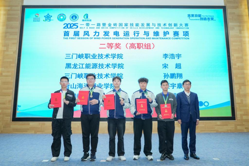 在激烈的角逐中,教师组成绩斐然:陆伟中老师以总分第三名的成绩夺得金奖,常乐冉、侯展博老师分别获得教师组银奖和铜奖。我院学子同样表现优异:2024级风力发电工程技术专业李浩宇、李博文,2023级孙鹏翔分别荣获学生组银奖。此外,三门峡职业技术学院荣获“最佳组织奖”,葛笑寒、吴萍、杜琛鑫三位教师获评“优秀指导教师”。